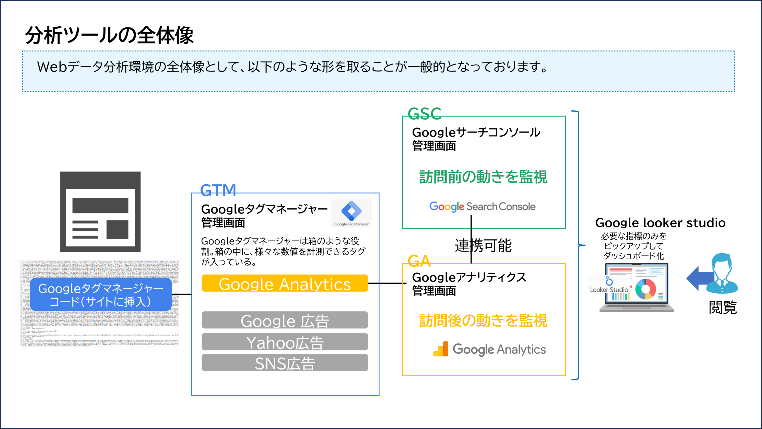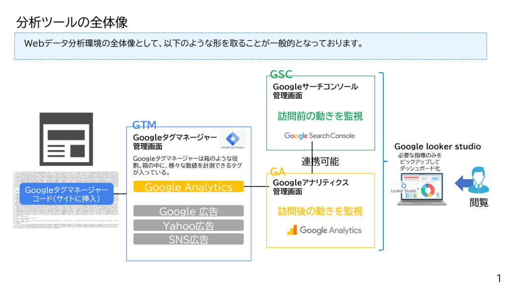 Googleタグマネージャーを理解するためには、他ツールとの関係式を理解することがまずは最短ルートです。