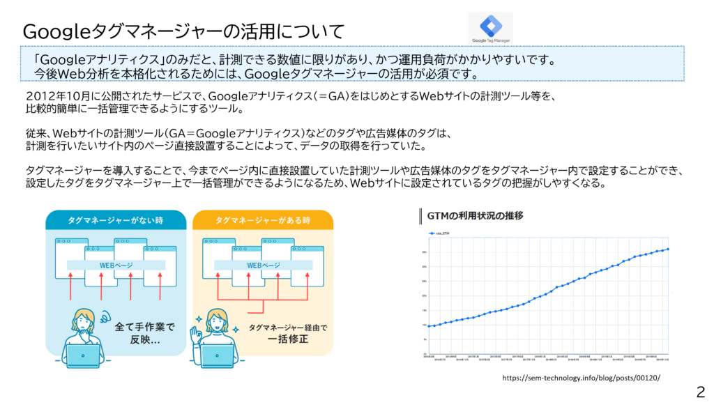 Googleタグマネージャーの活用について(スライド2枚目)