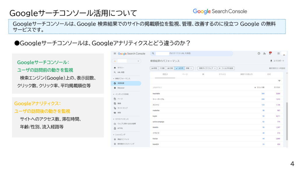 Googleサーチコンソール活用について(スライド4枚目)